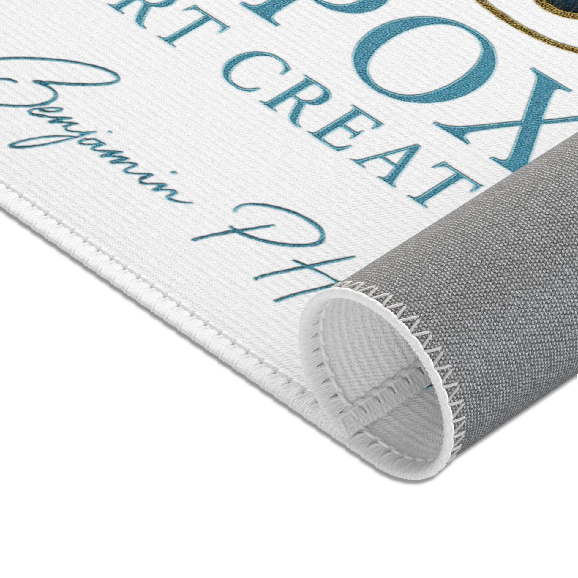 This chenille-area rug brings a clean, gallery-ready feel to entryways, studios, or craft corners. The design’s open white field and refined logo let artwork and décor breathe, while the bright, true-to-design printing keeps colors crisp over time. Hemmed edges and a grey underside help it lie flat on floors, and the durable polyester chenille resists pilling and holds its shape through daily use. Choose from multiple sizes to anchor a small workspace or welcome guests at the door with a calm, professional touch.